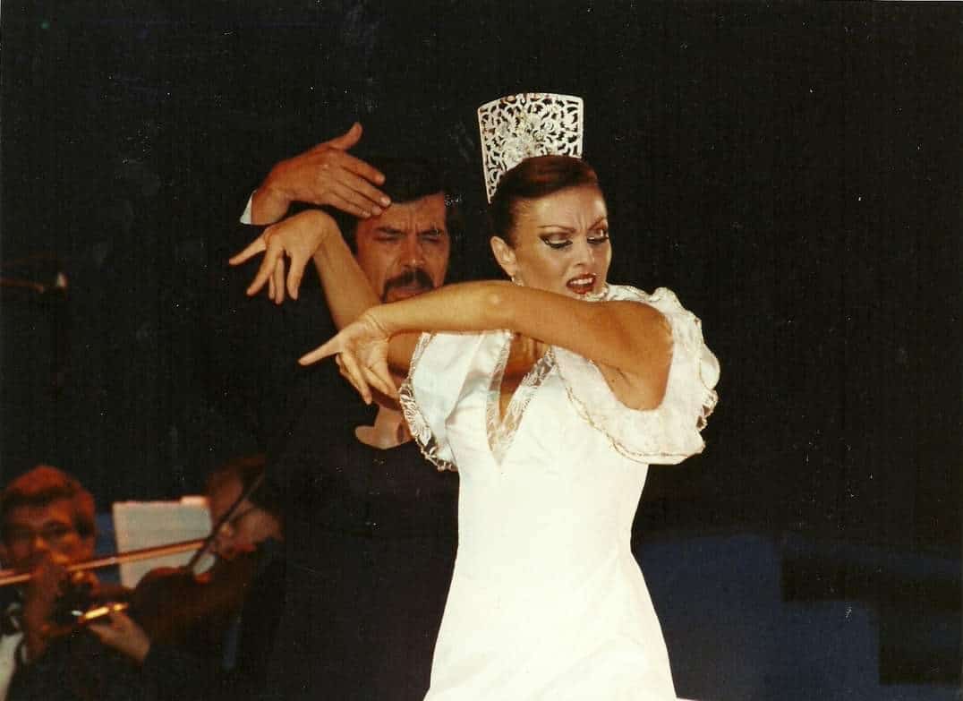 La verdad, es que no lo sé. Cuando era jovencita tuve la oportunidad de bailar otra cosa. Bueno, he bailado moderno también. Tuve que aprender de todo: clásico, clásico español, moderno, flamenco, regional… Aprendí de todo, porque para trabajar era muy importante. Las compañías llevaban de todo. Me hablaron también para hacer moderno, pero como que me atraía más. Y más que el flamenco, fíjate, me atraía más el clásico español. Lo que es el zapato con castañuela. Me atrae más. Me siento más identificada en el clásico español o danza estilizada, como lo llaman ahora. Sin embargo, Jorge, mi marido, es flamenco. Le llama más la atención, le gusta más que otra cosa. Pero bueno, nos hemos llevado muy bien arriba en el escenario y hemos bailado de todo.