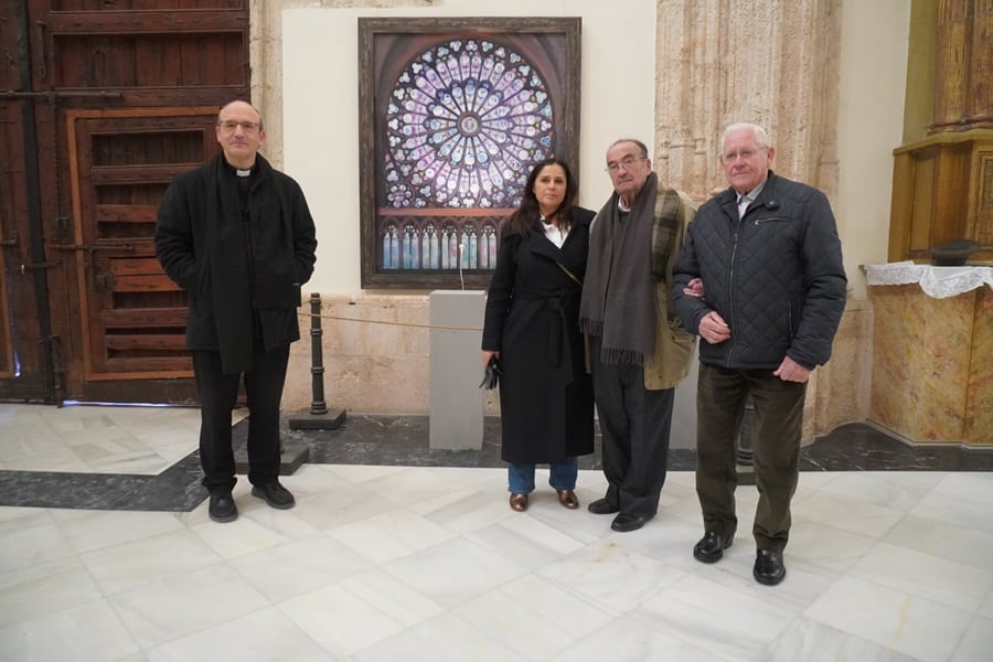 El cuadro del «Rosetón Norte» de Alfonso Sebastián, homenajea a «Notre Dame» y puede visitarse en la Colegiata estas navidades