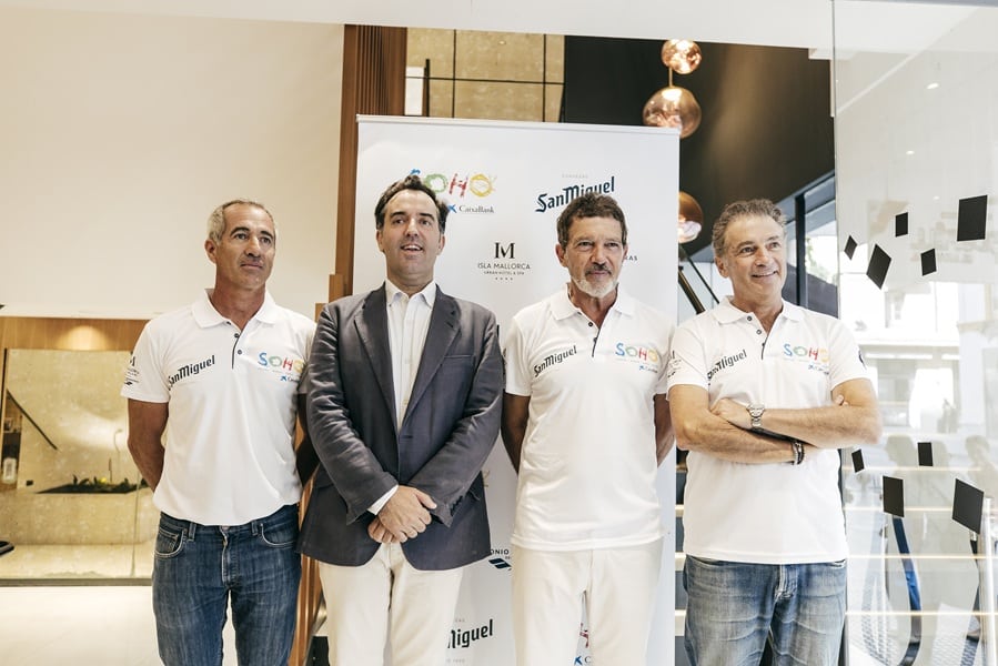 El equipo de regatas Teatro del Soho CaixaBank, liderado por Javier Banderas, presenta la nueva alianza y colaboración con San Miguel, llevando el alma de Málaga a cada una de las regatas de esta prestigiosa competición que es la Copa del Rey