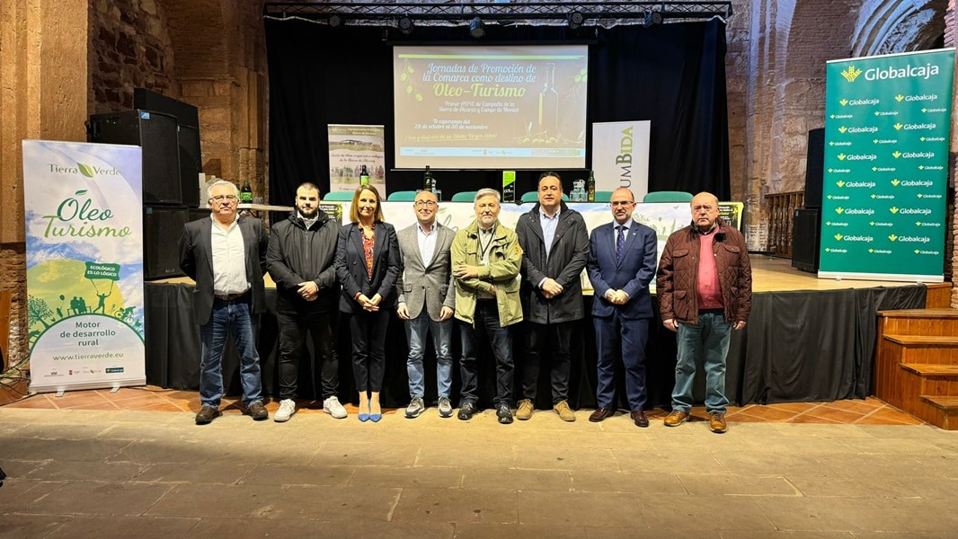 Junto al delegado provincial de Agricultura, Medio Ambiente y Desarrollo Rural, Ramón Sáez, han acompañado al alcalde, Pedro Valero, en la puesta en marcha de este foro dedicado a la promoción del turismo sostenible vinculado a la cultura del aceite, motor clave de desarrollo del territorio.