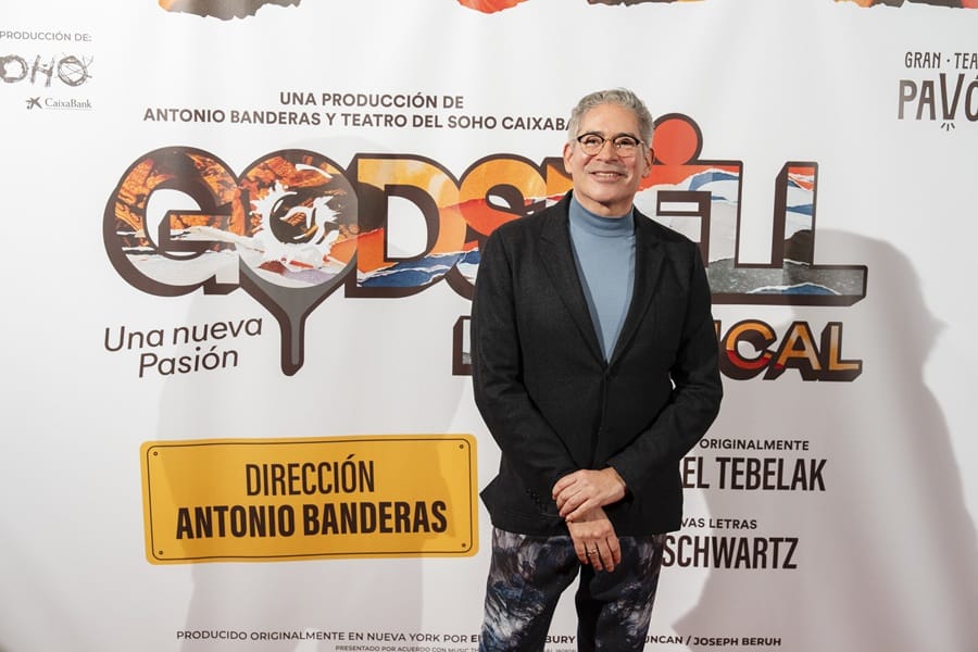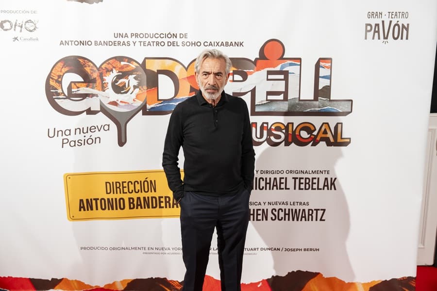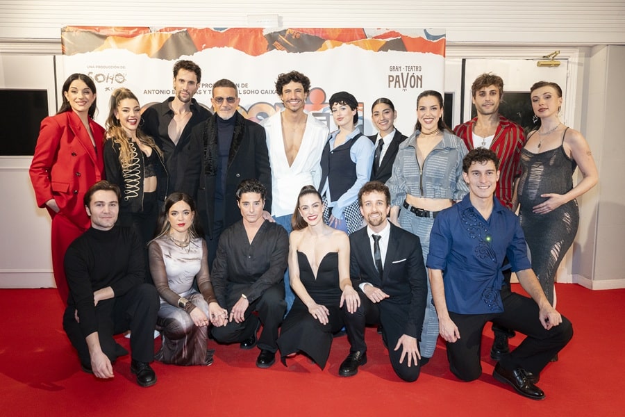 En el photocall posaron también Antonio Banderas con la compañía y el elenco de Godspell formado por Teresa Abarca, Javier Ariano, Alex Chavarri, Aaron Cobos, Paula Díaz, Ferran Faba, Laia Prats, Roko, Estibalitz Ruiz, Hugo Ruiz, Ana Dom ́ ínguez, Bella Exum, Paula Moncada, Raul Ortiz y Alex Parra ́ . Sobre el escenario y antes de comenzar la función, Banderas pidió al público un minuto de silencio dedicado a las víctimas de la tragedia ocurrida en Adamuz el pasado domingo.