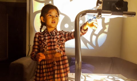 Con la ayuda de diversos objetos, observarás cómo las sombras cambian según la orientación, el ángulo o la intensidad de la luz y cómo objetos opacos y translúcidos pueden combinarse para crear una proyección singular y bella.
