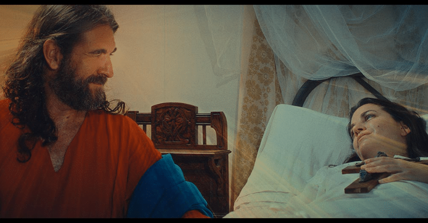 Uno de los puntos más técnicos y fascinantes surge cuando comentamos la narrativa visual. La vida de Gemma Galgani, marcada por la enfermedad y la reclusión, transcurrió mayoritariamente entre cuatro paredes. «¿Cómo mantienes al espectador 90 minutos en una habitación sin que se aburra?«, se pregunta retóricamente el director y continúa «ese fue el gran reto. Tuvimos que profundizar en el drama interno, en la intensidad de sus éxtasis, para que la falta de movimiento físico se compensara con una mística arrolladora«. Esa fue la solución, convertir la limitación en lenguaje cinematográfico. Óscar detalla cómo el rodaje se centró en la micro-narrativa: el detalle de una mano, el brillo de una mirada en pleno éxtasis, la penumbra de la estancia. La cámara no es un observador distante, sino un testigo casi indiscreto que «espía» la santidad. El desafío fue rodar lo que ocurre «dentro» de la protagonista, logrando que el espacio cerrado se sienta como un universo infinito gracias a la intensidad dramática.