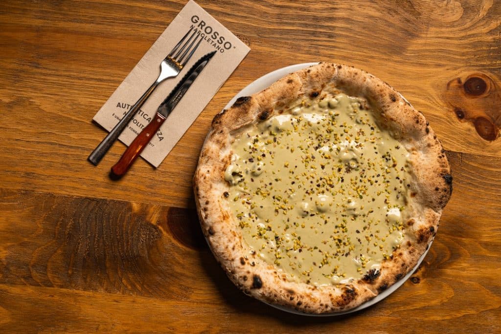 Si el pistacho es el rey de los frutos secos, Grosso es su trono. Y en su reino, dos postres han conquistado sin esfuerzo a los más golosos: la Pizza-cchio y el Sorrento al Pistacchio. No son una novedad, son dos clásicos.