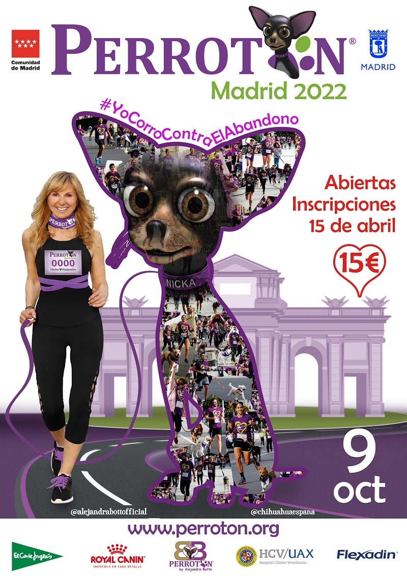 Tras el rotundo éxito obtenido en sus últimas diez ediciones, Abott Producciones organiza la nueva edición de Perrotón Madrid que se celebrará el domingo 9 de octubre con salida en la Plaza de Colón, donde los más de 5.000 participantes procedentes de toda España acompañados de sus perros recorrerán 4 km por algunas de las calles más emblemáticas de la ciudad de Madrid.