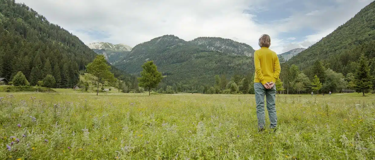 Un viaje a través de catorce espacios de escucha y de experiencia: desde el cuarto de baño hasta la iglesia parroquial de Bad Ischl, pasando por los pastos alpinos y el desierto rocoso del Totes Gebirge, hasta llegar a Hinterstoder y de regreso a la vida cotidiana.