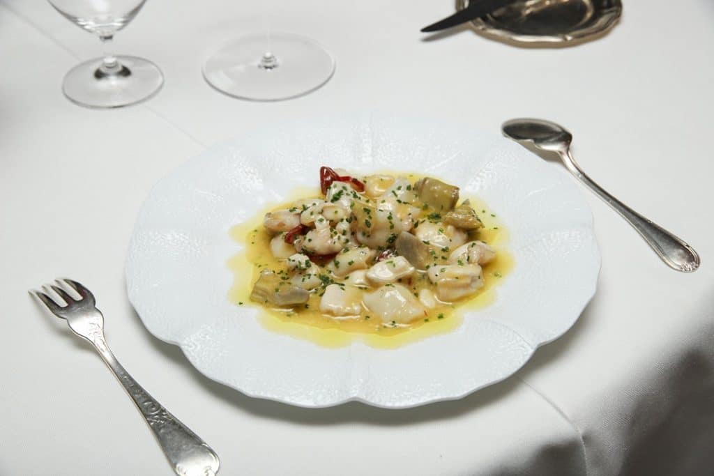 Prueba de ello son las nuevas incorporaciones diseñadas por su equipo de cocina para la temporada de otoño/invierno. Entre las nuevas entradas destacan el Tartar de bogavante y lubina con caviar, aderezado con jugo de alcaparras crujientes y algas; las Ostras napadas, con su velo de gelatina, taboulé de verduras a la menta, salsa de lima kéfir, pepino y coco; el Huevo poché reposado sobre ragout Veneciana y crema de queso Brillat-Savarin; o la Crema de calabaza con su crumble, brioche de mantequilla y aceituna Kalamata.